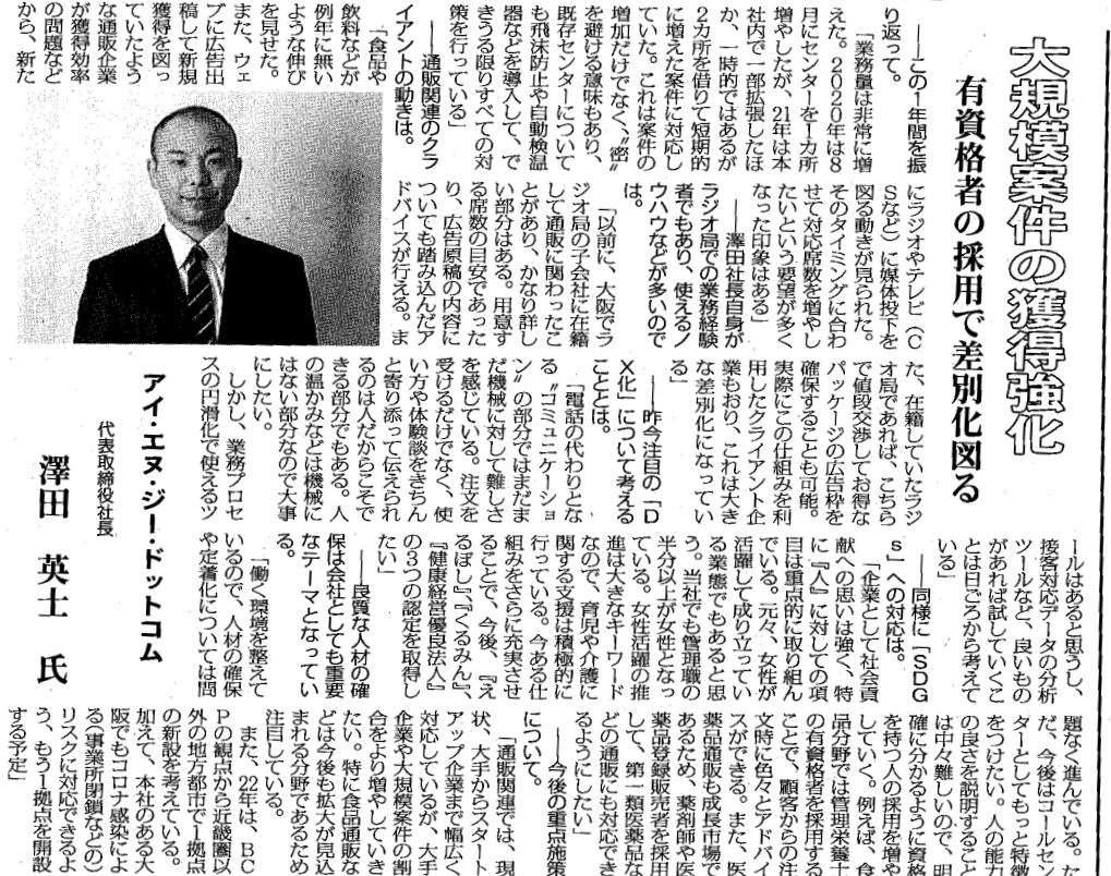 > 通販新聞に澤田社長の記事が掲載 > 2022tn